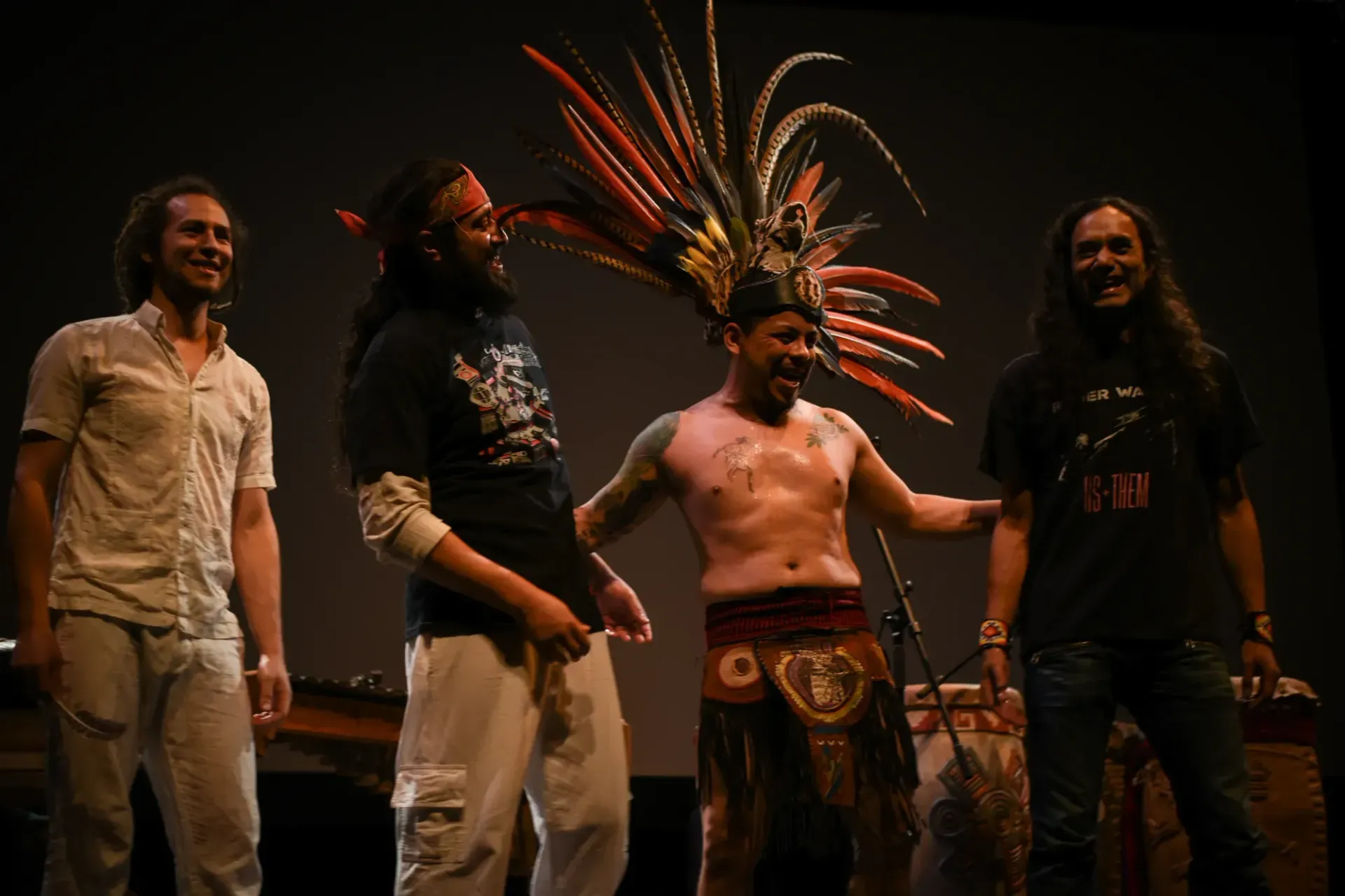 Dancing in the footsteps of their ancestors, the members of Tocani perform on instruments modeled on those from pre-Hispanic times: huēhuētls (a tubular membraphone from Mesoamerica), ocarinas (a kind of vessel flute), kuisi ( a type of flute from the Koguis people in Colombia), marimba de chonta (a melodic percussion instrument from the Awa and Chachi communities in Colombia and Ecuador), and teponaztli (an ancient wood-tongue drum from Mesoamerica).
