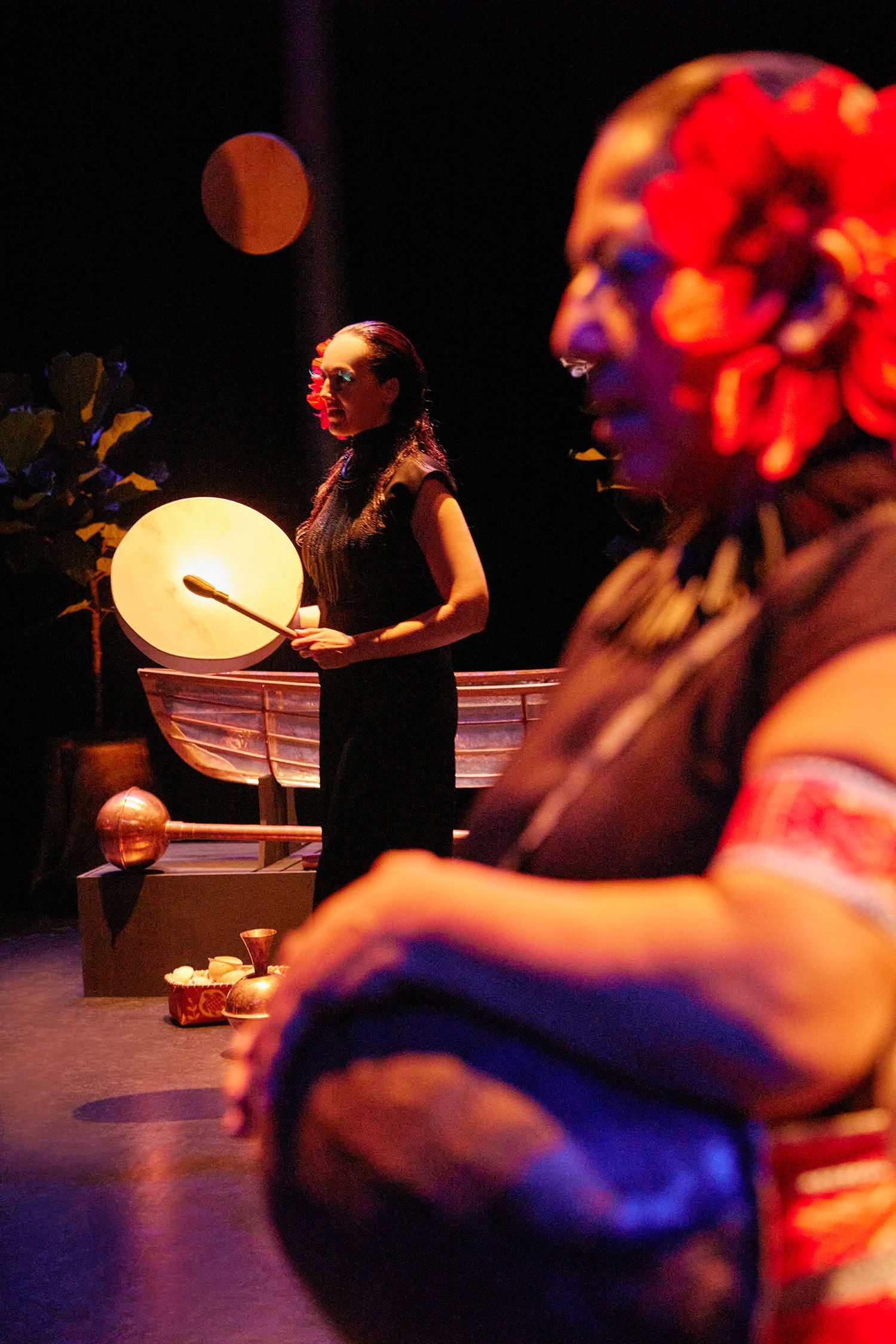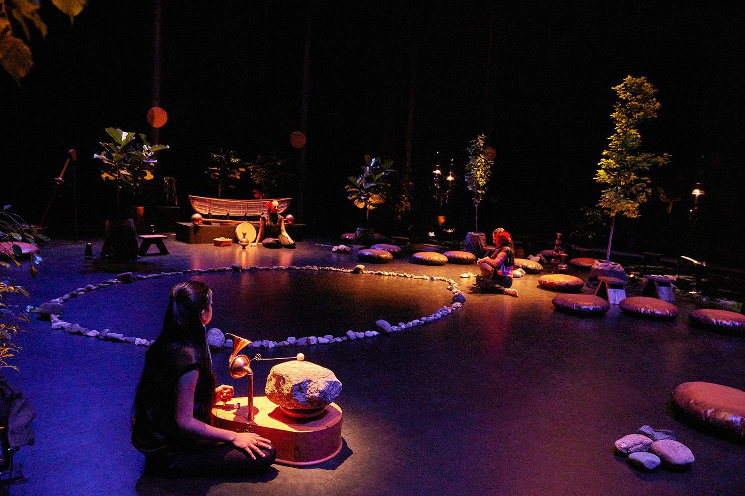 Within an intimate space, audiences are surrounded by the resonant sounds of breath, song, and elemental rhythms. Deeply personal and profoundly political, Nigamon/Tunai is both an act of solidarity and a poetic manifesto against extractivism, land destruction, and displacement.