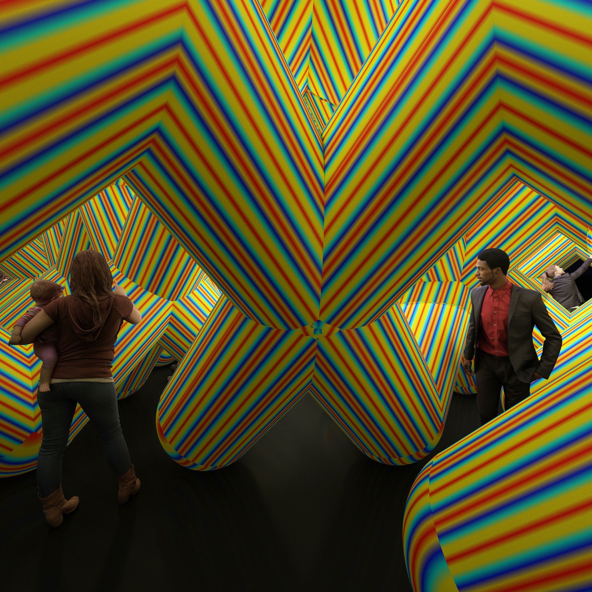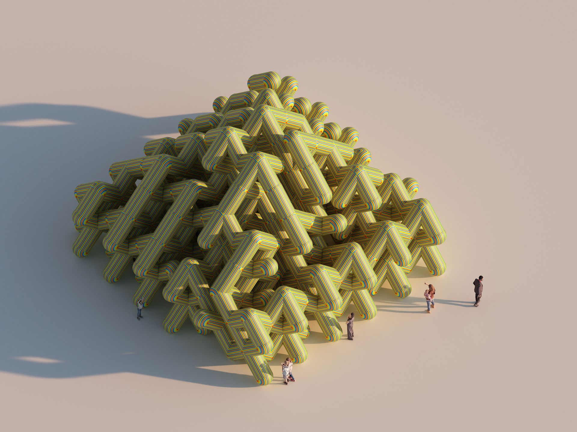 By day, they feel maze-like and playful; by night, they glow as illuminated beacons. Whether on the way to work, during a lunch break, or between errands, visitors are invited to pause and explore these towering forms. Part architectural marvel, part playground,