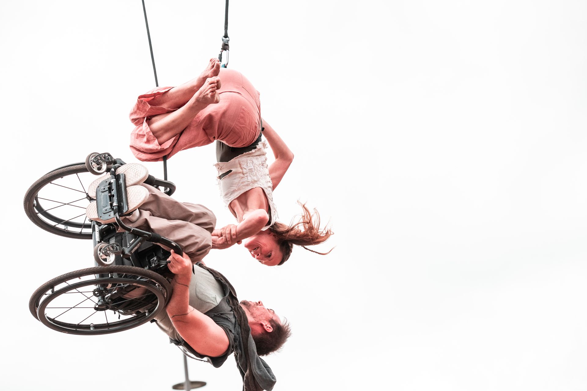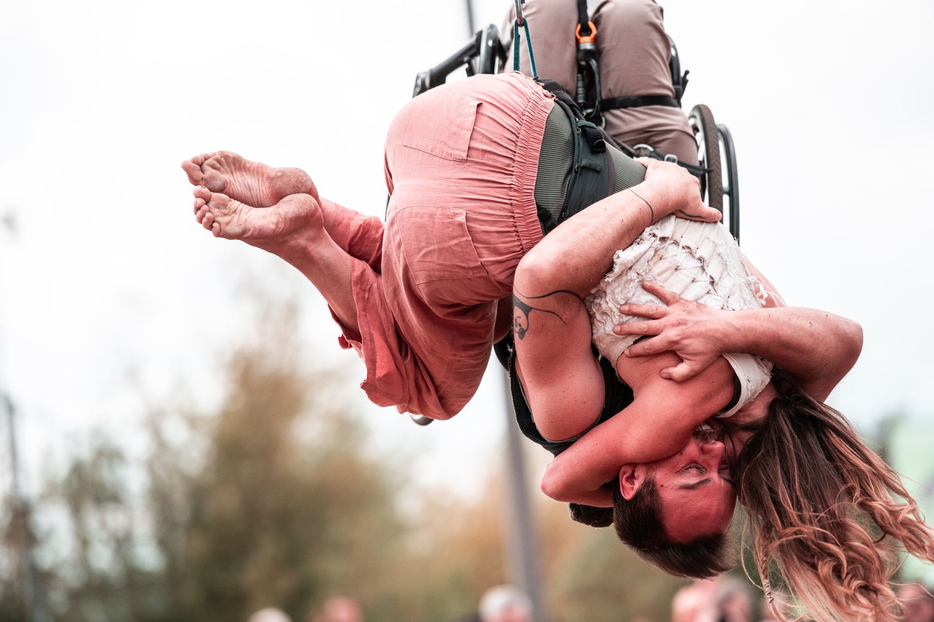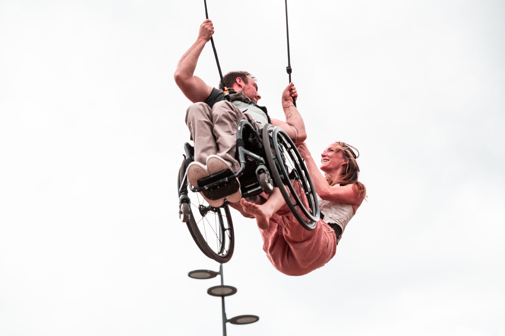 A joyful and awing aerial collaboration, The Air Between Us is created by acclaimed New Zealand dancer and choreographer Chloe Loftus who performs alongside award-winning Belgium dance artist and wheelchair-user Florent Devlesaver.