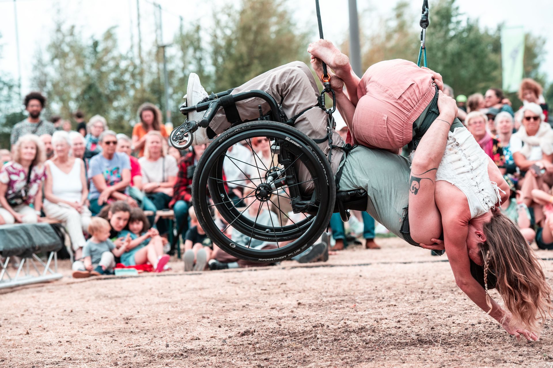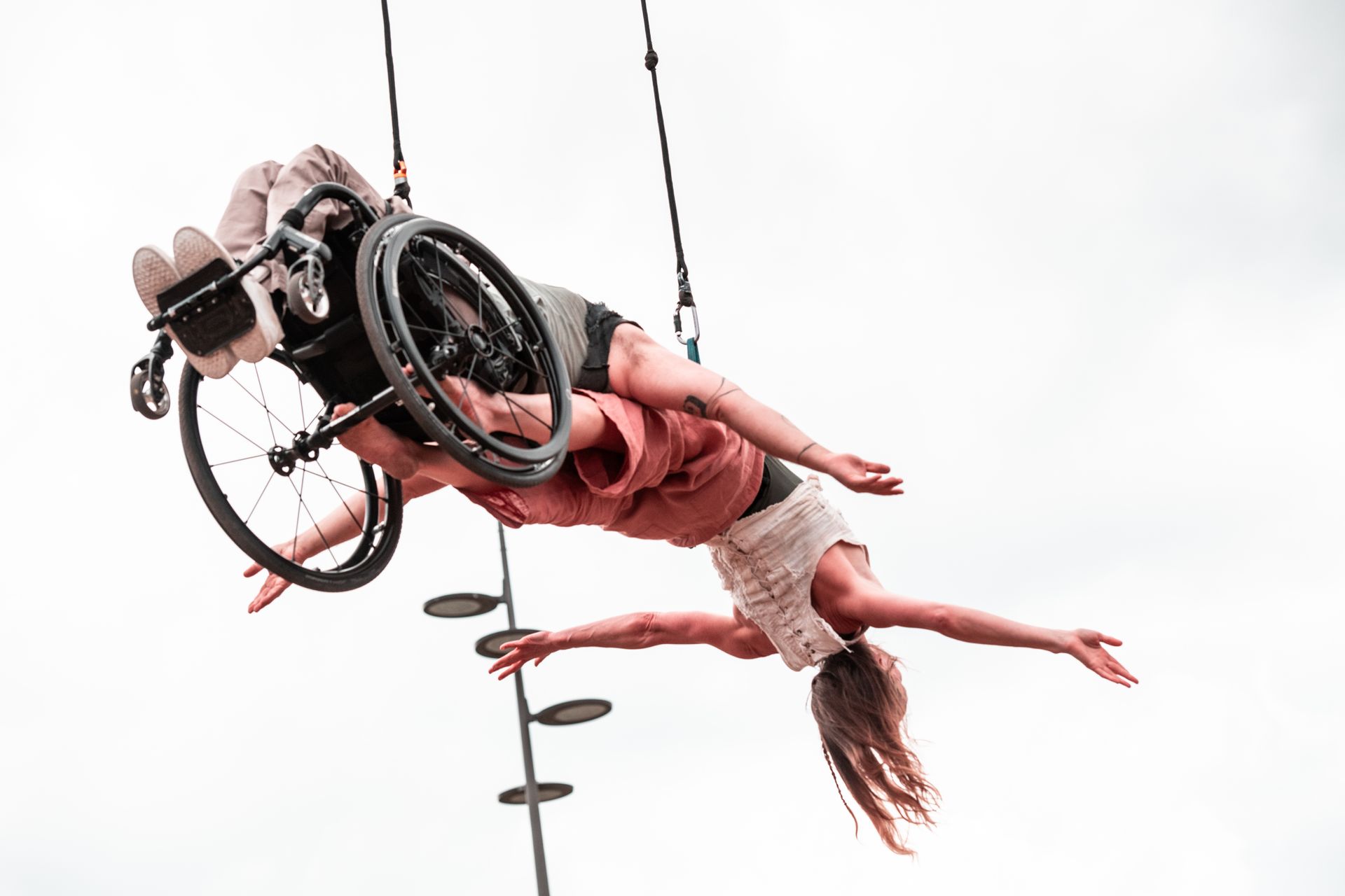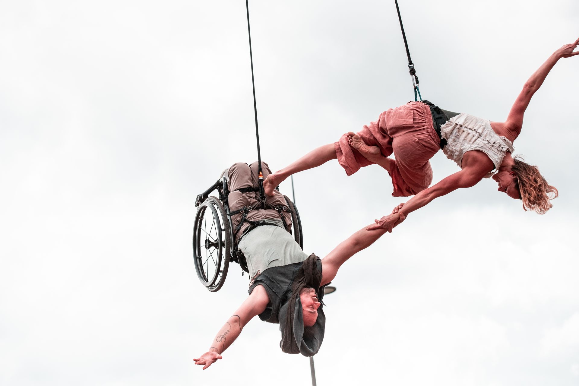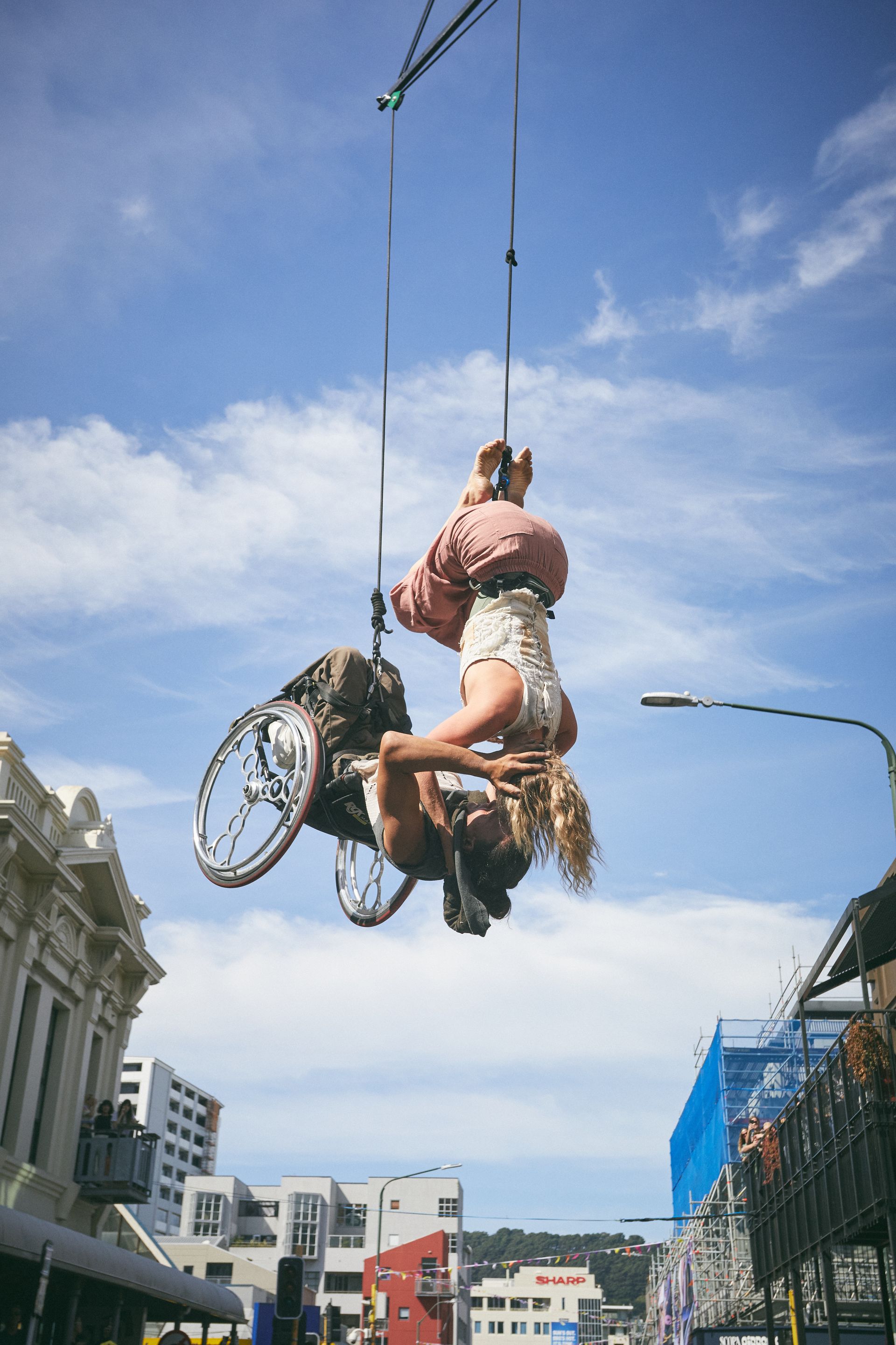 A joyful and awing aerial collaboration, The Air Between Us is created by acclaimed New Zealand dancer and choreographer Chloe Loftus who performs alongside award-winning Belgium dance artist and wheelchair-user Florent Devlesaver.